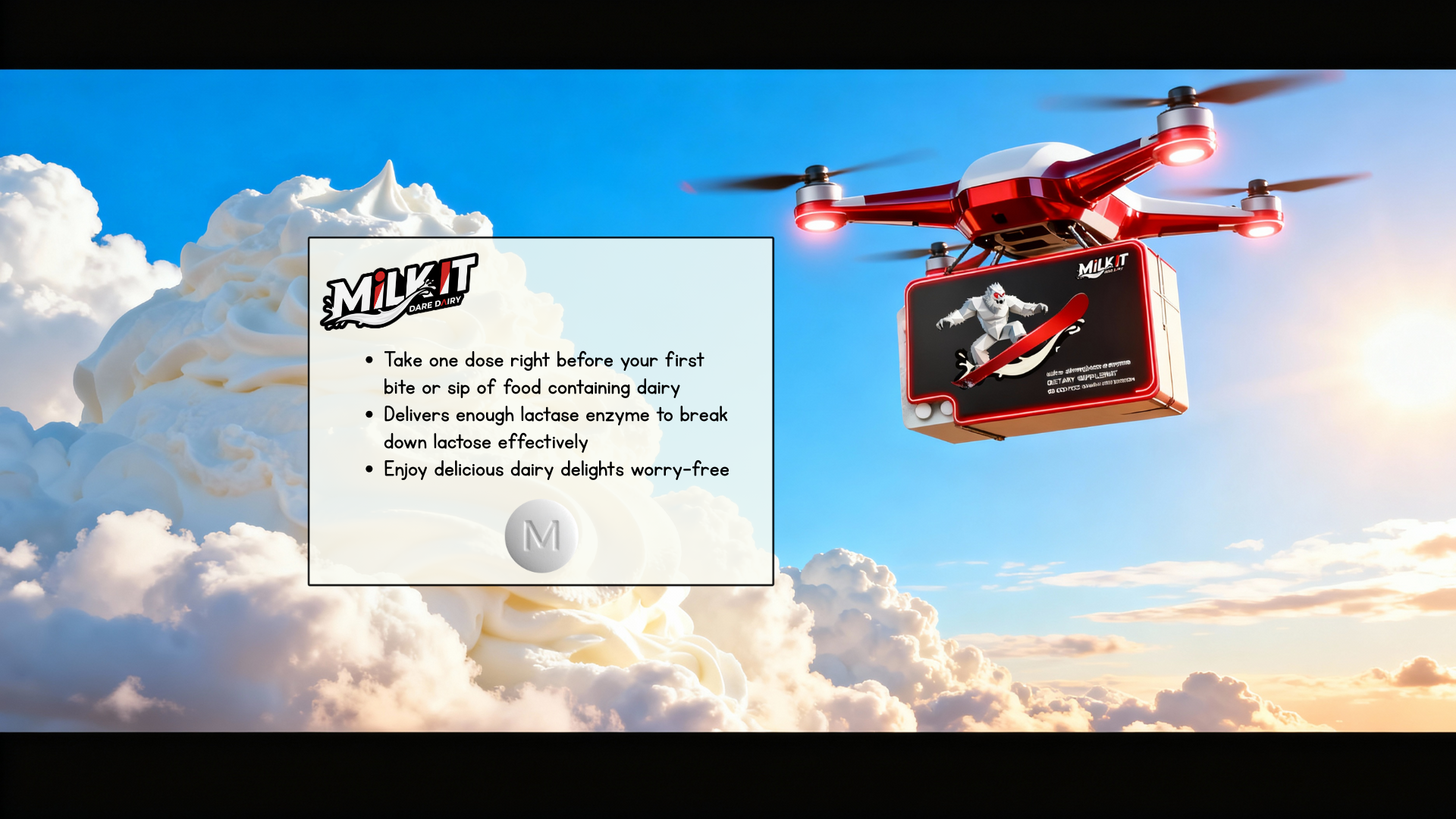 A single Milk It pill before that first delicious bite of dairy delivers the confidence to conquer any milky meal. In comfort.